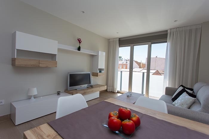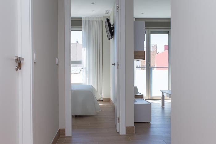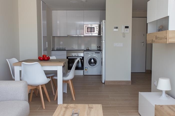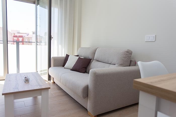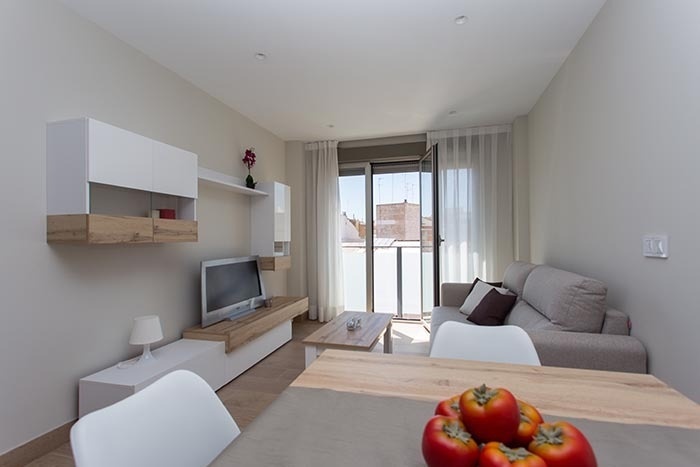 This building stands out for its functional facilities, its space, equipment, luminosity and good communication. The apartments are fully equipped with all the comforts for a pleasant stay: Complete living room with fully equipped kitchenette (washing machine, oven, ceramic hob, microwave, refrigerator, kitchenware, etc.), Balcony, Bedrooms with built-in wardrobes, video intercom, full bathroom.